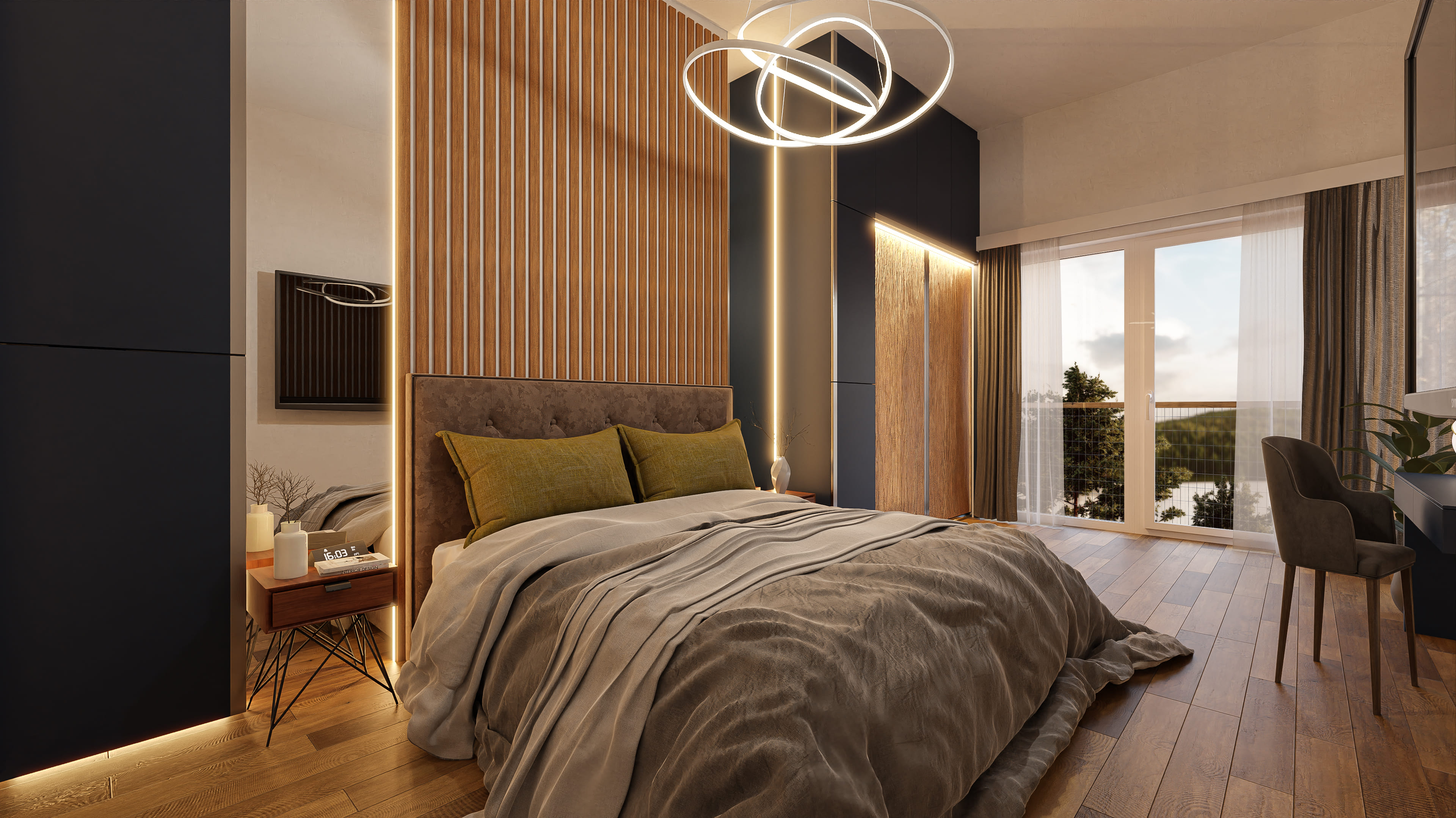 Byty jsou navrženy jako světlé a otevřené prostory s jedinečným výhledem na jižní stranu, odkud se přes koruny stromů otevírá panorama jezera a šumavských hřebenů. Díky umístění domů na horní hraně svažitého terénu směrem k vodě má každý byt pocit nadhledu a výjimečné polohy nad krajinou.